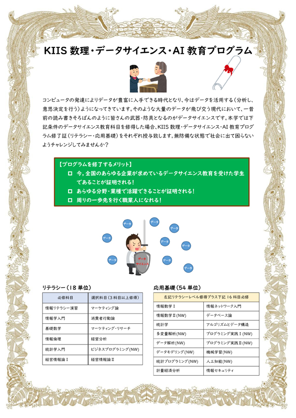 詳細は、「KIIS数理・データサイエンス・AI教育プログラム」のページをごらんください。 |