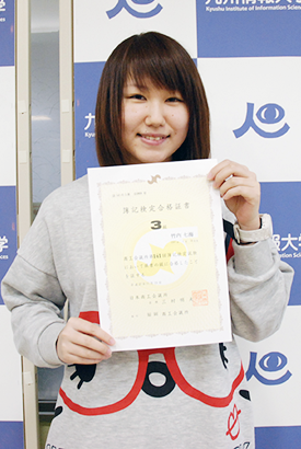 在学生の証言 私は、商業高校で日商簿記2級を取得し、大学では会計学をもう少し深く勉強しようと思い日商簿記1級目標プレゼミに入りました。現在では、簿記の勉強を先生に教えてもらっていると同時に後輩への簿記指導や九州情報大学内のPCクリニックで簿記チューターをしています。 |