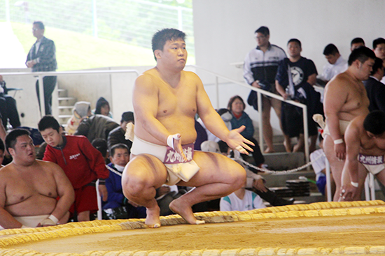 相撲部では主将として活躍中 |