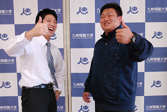 相撲部を指導して14年目になります。本学の相撲部の特色は、稽古はかなり厳しくやりますが、稽古が終われば、みんな仲が良く、フレンドリーな雰囲気を持っているところです。就職率は毎年100%。中には、角界に入る学生もいます。