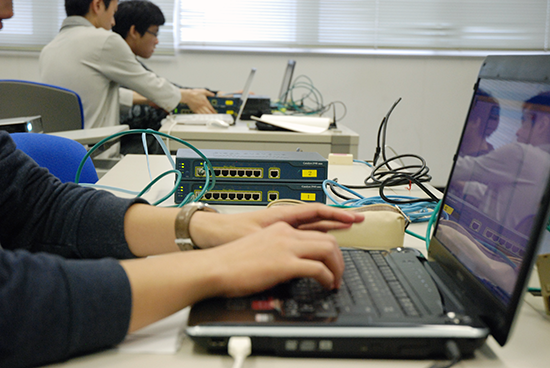本学ならではの特徴としては、まず、対策講座を通してしっかりと実力を磨き、3年の後期までにCCNA資格を習得し、4年時の就活を有利に持っていくことです。
