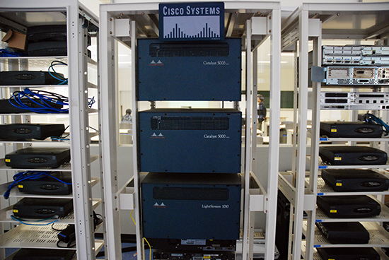 ネットワーク技術をしっかりと身に着けるためには、十分な実習時間を確保するのが大前提であるため、CCNA対策講座は、ふつうの大学授業は週1回90分で行われることに比べ、90分の授業を週3回行っています。