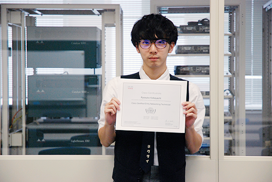 2年次の授業「ルーティング技術」でネットワークに興味を持ち、CCNAを取得した小林先輩に「まずはCCENTから取得するといいぞ」と勧められたことがきっかけです。受験勉強に本腰を入れたのは、それから半年後の2年次の春休みでしたがそこからCCENTに合格することができたので、CCNAにチャレンジしました。