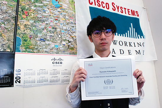 PCクリニックの先生が放課後、週1日勉強会を開いてくれました。先生もCCNAを取得していることと、この試験を実施しているCISCO社の機器もあるので、とても分かりやすくためになりました。そういう意味では環境的には恵まれてましたね。自宅では、参考書を読んで知識を身に付け、ネット上の問題集をひたすら解きました。それがネットワークの授業の予習になって、いいサイクルを作ることができました。