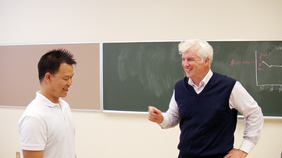 ゼミ生はオーストラリアの上場企業を選び、「仮想の投資」として$100,000を投資します。毎週自分の会社の株価をチェックし、損益を計算します、そして授業でゼミ生は英語で”Stock Report”を報告しなければなりません。世界の動きによって株価が変動しますが、それを英語でDISCUSS。各自は選んだ会社について調べてレポートを作成することにより、専門用語が身に付きます。学期末に一番利益が上がった学生(と一番損した学生も)に賞状を贈呈。このSTOCK REPORTを通じて調査力、計算力、発表力、専門用語を楽しみながら英語で身に着けることができます。