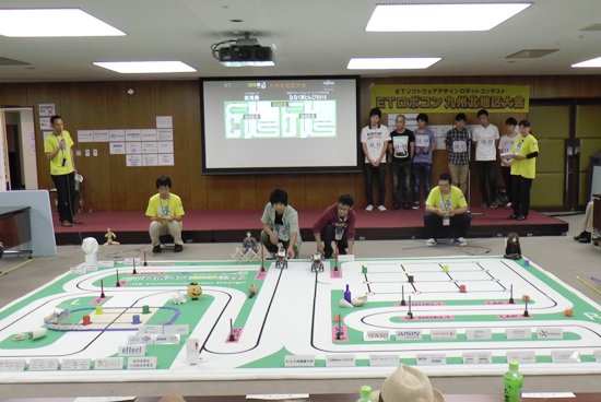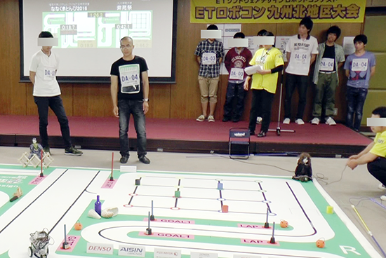 10月2日に岸川ゼミ生4名(3年生)が、「ETロボコン2016」九州北地区大会に、チーム「紫苑祭」として、デベロッパー部門アドバンスドクラスに出場しました。完走と難所クリアを目指し、他大学の学生と競いました。