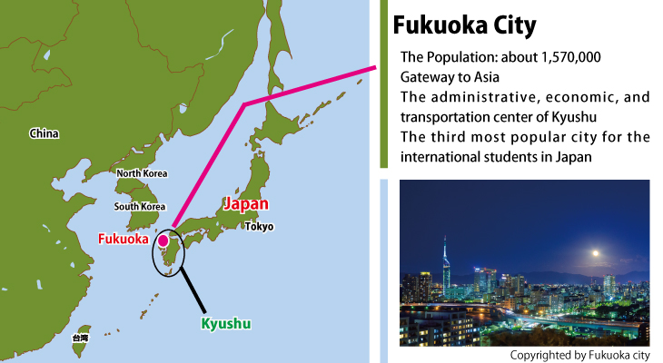 The satellite campus of KIIS locates in Fukuoka city, the administrative, economic, and transportation center of Kyushu. Fukuoka city has a large population (about 1,570,000), but is famous for its livability. Fukuoka’s living cost is much cheaper than that of Tokyo or Osaka.