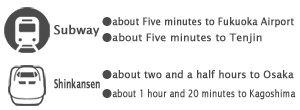 The public transportation systems are stretched all over the city, and the center of it is JR Hakata station. Only 7 minutes’ walk from Hakata station brings you to the satellite campus.