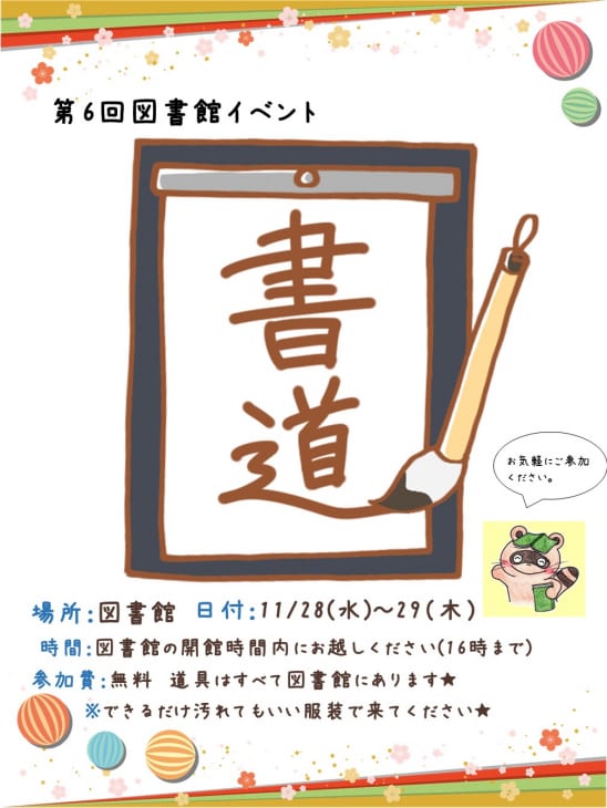 筆と墨を使って、好きな漢字や言葉などを自由に書いてみませんか?