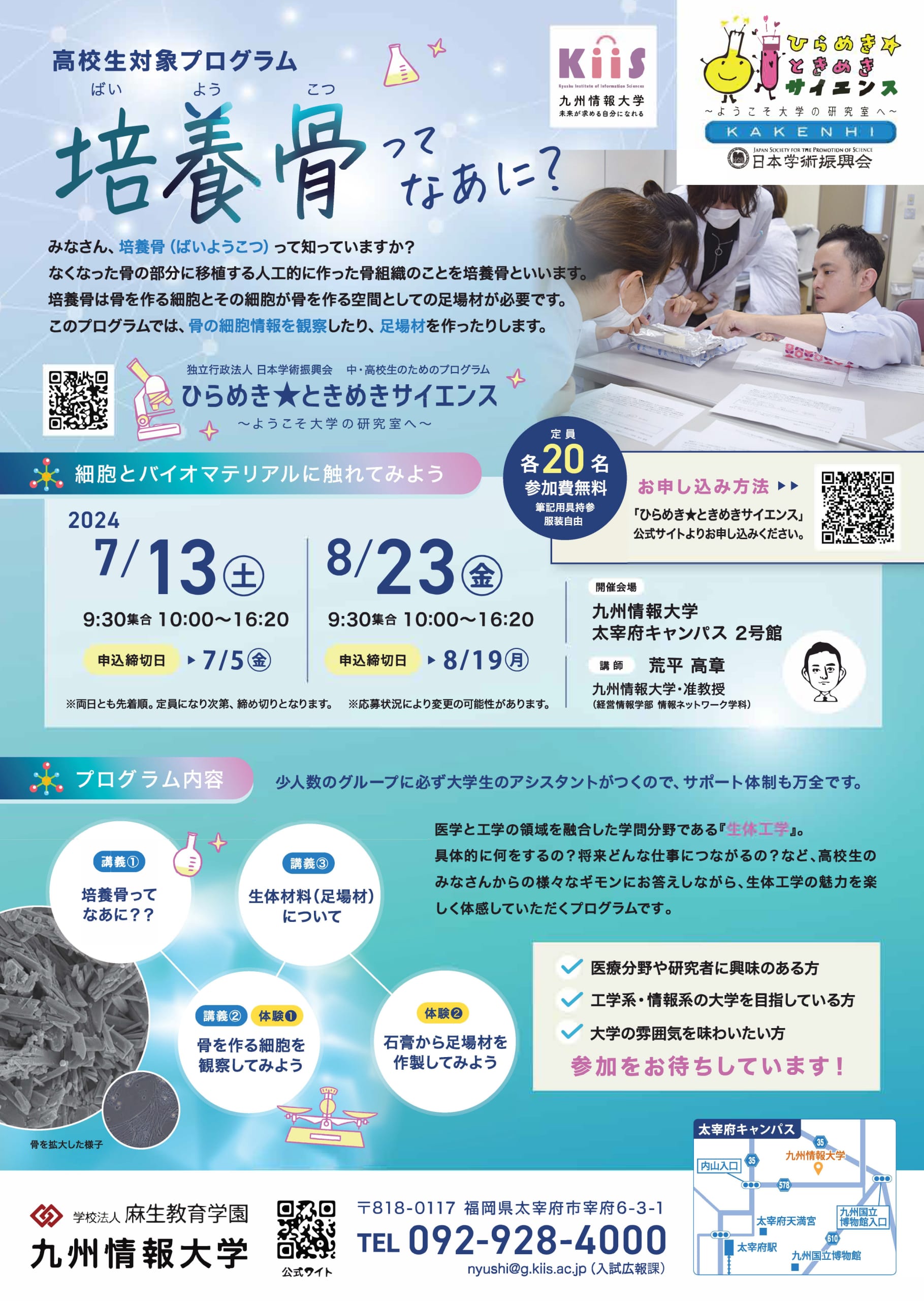 2024年7月13日(土)・8月23日(金)・11月2日(土)「培養骨ってなあに?」と題して