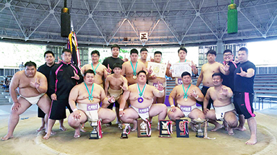 6月4日(日)大阪府堺市大浜公園相撲場で開催された第91回西日本学生相撲選手権大会において本学相撲部が3度目の団体優勝をいたしました。 また、個人戦において3年生橋本くんが3位となりました。