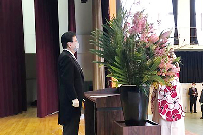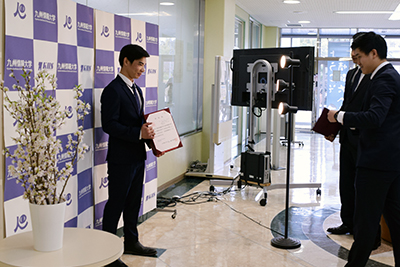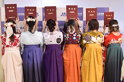 3/18(金)13:30から本学体育館におきまして、令和3年度九州情報大学、九州情報大学大学院学位記授与式並びに九州情報大学日本語別科修了証書授与式を挙行しました。今年度も昨年に引き続き、新型コロナウイルス感染対策のため規模を縮小しての挙行となりました。