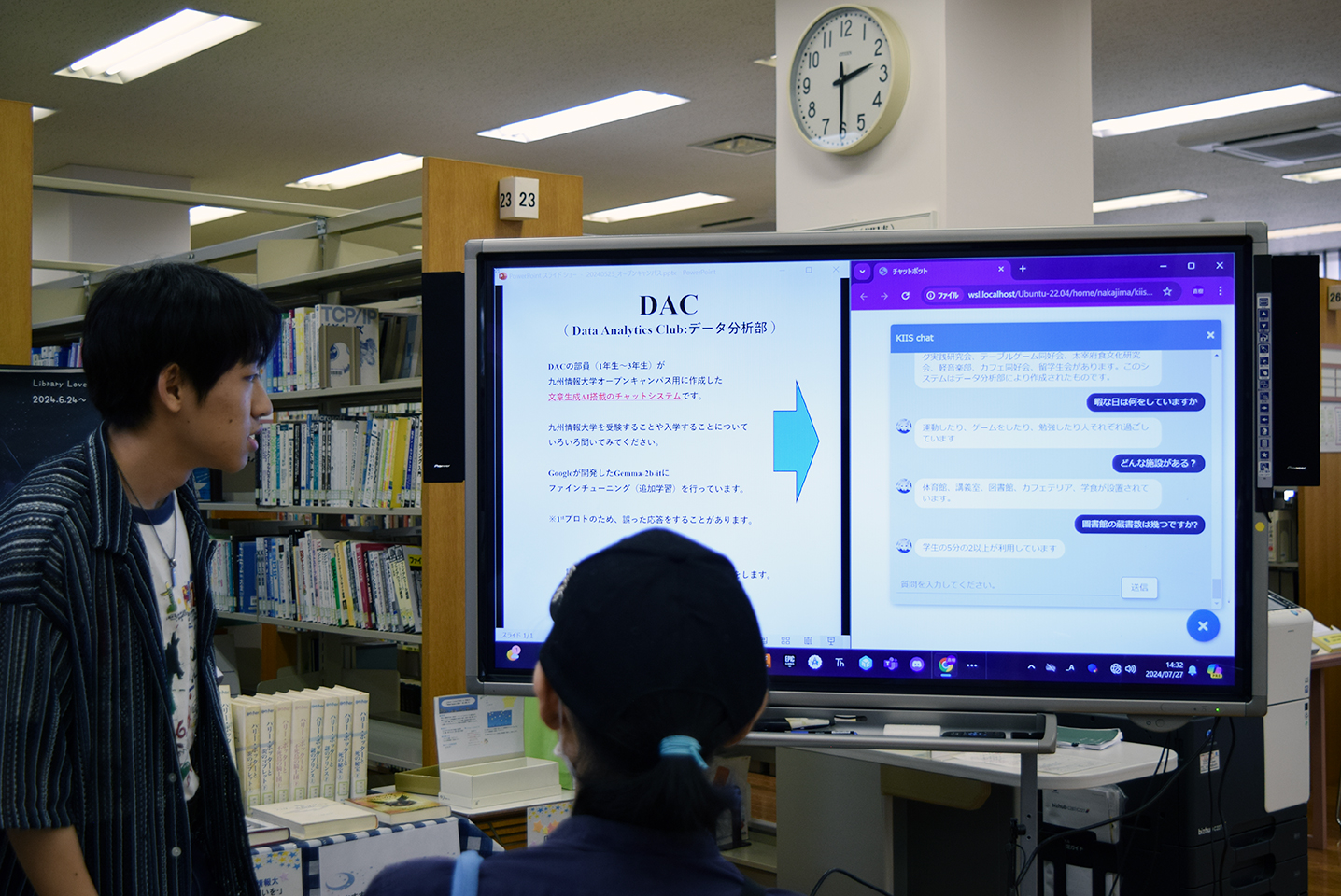 全体説明会では、5月同様、永野さん、田村さん(情報ネットワーク学科3年生・荒平ゼミ)が、ゼミ紹介を行ってくれました。