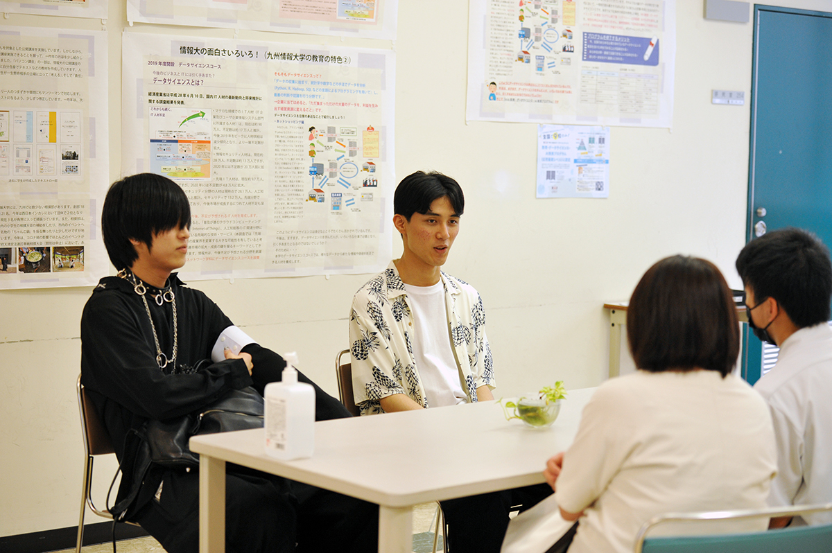 ゼミ紹介では、小田さんが日商簿記2級、リテールマーケティング1級を取得した経緯を始め、先生との距離が近く相談しやすい雰囲気や、学費が安く、留学生との交流も盛んにできる九州情報大学の特色について学生目線で話してくれました!