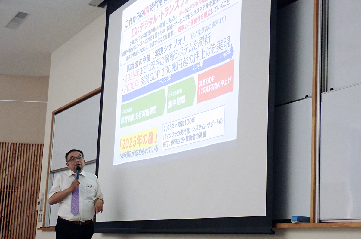 秋吉経営情報学科長による大学説明