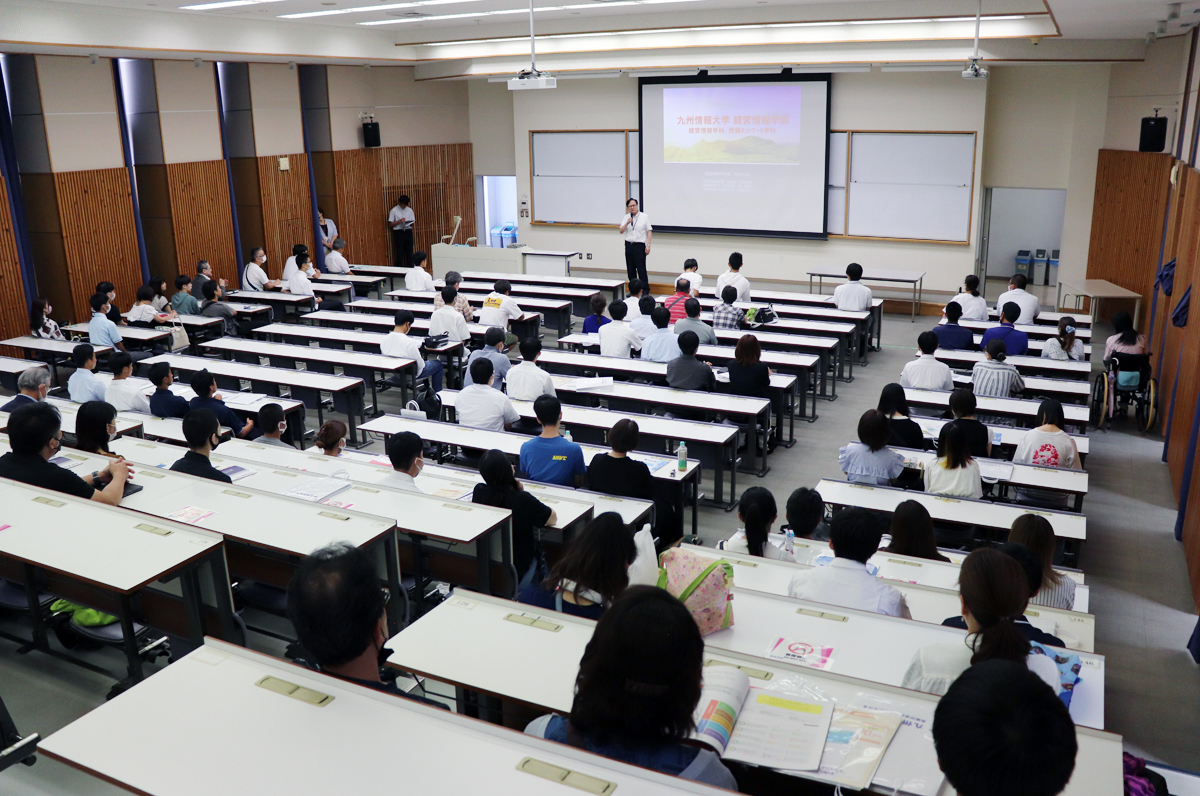 全体説明会では、秋吉経営情報学科長から、本学の概要、社会に求められているIT人材についてなどの説明が行われました。