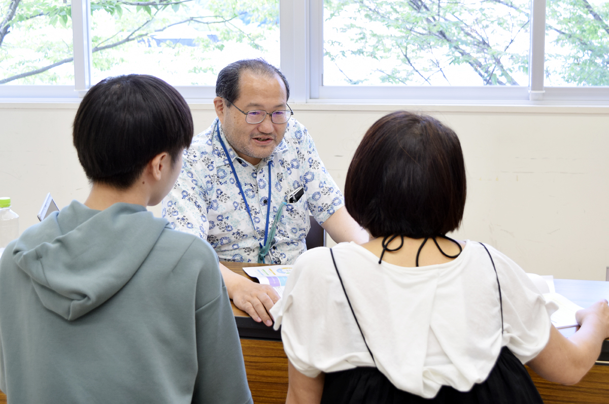 その後は教室を移動して、各学科・各コースの担当教員から、本学の学びの特色などについて個別の相談会が行われ、充実したオープンキャンパスとなりました。