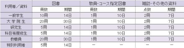 長期休暇期間に伴う特別貸出については、事前に掲示板等でお知らせします。